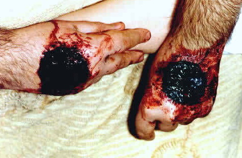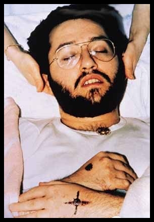 Y tras cada titánico esfuerzo para respirar una vez más, el cuerpo vuelve a caer suspendido de los brazos, al no poder sostenerse sobre las piernas rotas. Así, en pocos minutos, el crucificado muere por asfixia. Actualmente algunos fanáticos y fervorosos cristianos son crucificados voluntariamente, como ocurre en Semana Santa en Filipinas, siendo clavados por las palmas de las manos en lugar de por las muñecas. Evidentemente sus palmas resisten el peso del cuerpo ya que este reposa sobre un pedestal en que apoyan sus pies. De ser rotas sus piernas, como ocurría en la crucifixión romana, sus manos se rasgarían ante el peso del cuerpo, por lo tanto las imágenes como los cuadros que muestran a un Cristo crucificado de las palmas de las manos están fuera de la realidad. Esto nos conduce a otro aspecto sintomático de la crucifixión. Los místicos de todos los tiempos han presentado los estigmas de la pasión de Cristo con heridas en las palmas de sus manos. Esas heridas tienen relación con arquetipos de la imaginería popular clásica y contemporánea, igual que los penitentes filipinos actuales, pero NO TIENE NADA que ver con la crucifixión histórica.